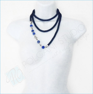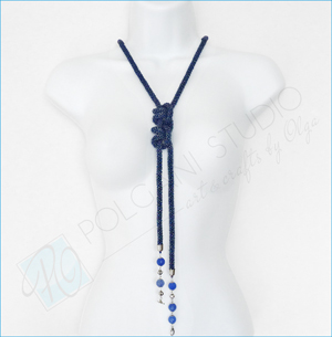A lariat necklace is traditionally a very long (45-70″/115-180cm) rope necklace without a clasp. It can be worn draped multiple times around the neck; the ends can be crossed over, looped (lasso style), or knotted. If a lariat has a toggle clasp, you can transform it into multi-strand necklace or bracelet combinations. Lariat necklace is a great way to make a unique jewelry statement!