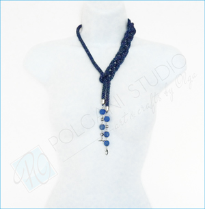 My lariat necklaces are created from thousands of tiny Japanese beads of superior quality. Making a lariat is a real labor of love, requiring several hours of stringing beads followed by even more hours of crocheting. For a lariat necklace of 50″long, it takes about 8 yards of strung beads (~6000 seed beads) and 60 yards of thread to crochet.