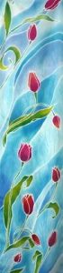 Painting on silk might be a long process, but well worth the result. Beautiful colors around your face will compliment your complexion as well as your wardrobe.